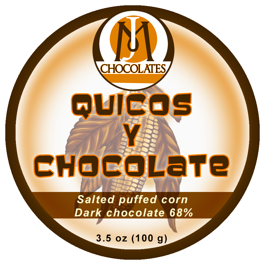 Ingredients: Dark Chocolate (Cacao Mass, Sugar, Cacao Butter, Cacao Powder, Emulsifier (Soy Lecithin), Vanilla natural flavor), Roasted Corn (Corn, Corn Oil, Salt). CONTAINS SOY LECITHIN, CORN