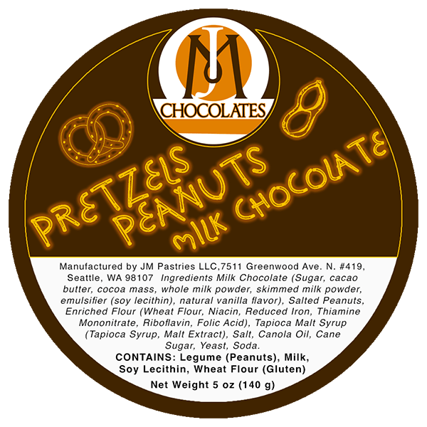 Ingredients: Milk Chocolate (Sugar, cacao butter, cocoa mass, whole milk powder, skimmed milk powder, emulsifier (soy lecithin), natural vanilla flavor), Salted Peanuts, Enriched Flour (Wheat Flour, Niacin, Reduced Iron, Thiamine Mononitrate, Riboflavin, Folic Acid), Tapioca Malt Syrup (Tapioca Syrup, Malt Extract), Salt, Canola Oil, Cane Sugar, Yeast, Soda. CONTAINS: LEGUME (PEANUTS), MILK, SOY LECITHIN, WHEAT FLOUR (GLUTEN)