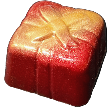 Stollen Whipped marzipan ganache with caramel chocolate, blended candied fruit and a touch of brandy. Based on the Dresden Stollen. Dark chocolate shell. Dietary notes: contains dairy (butter), tree nut (marzipan), alcohol, soy lecithin in chocolate.