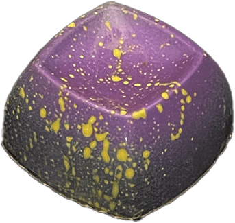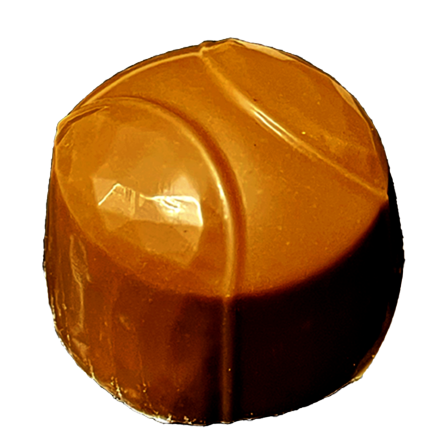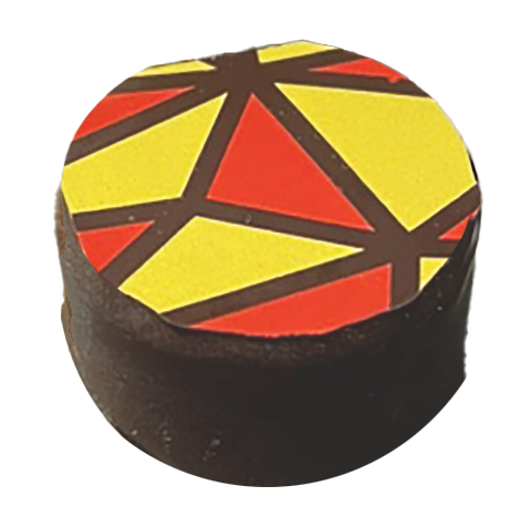 Vanilla & Passion Fruit Milk chocolate ganache with vanilla bean layered with Valrhona Passion Fruit Chocolate ganache. Coated in milk chocolate. Dietary notes: Dairy (butter, milk powder in chocolate), Soy Lecithin in milk chocolate.