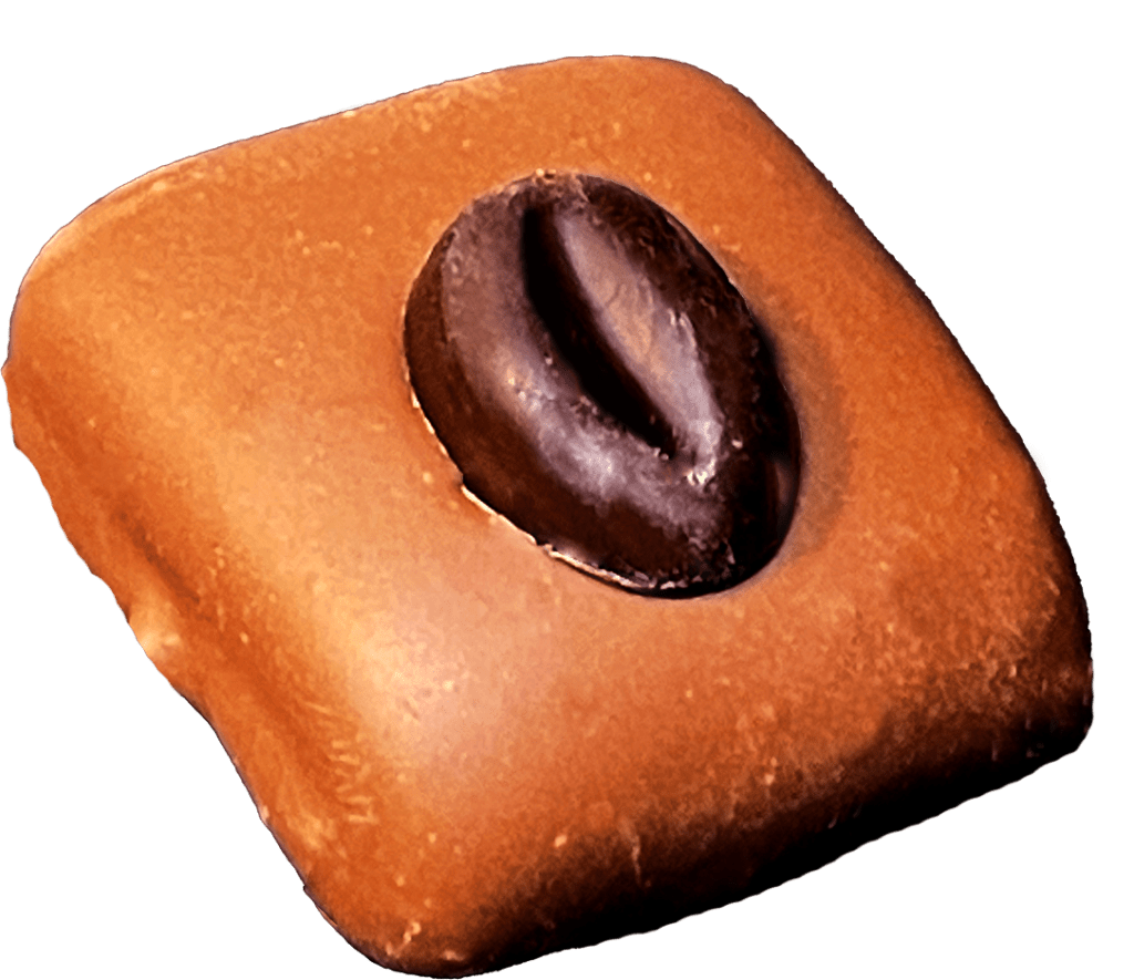 Hazelnut Crunch Caramel Mocha Coffee caramel on a layer of hazelnut praline crunch. Milk chocolate coating with a dark chocolate bean. Dietary notes: Contains dairy, tree nut (hazelnut and almond), gluten, sun flower oil, soy lecithin in chocolate.