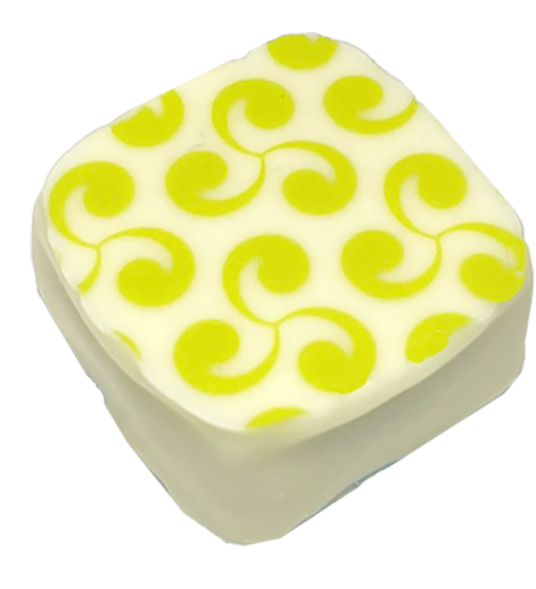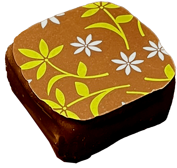 Jasmine Lime Jasmine Tea steeped with cream and lime, then blended with a milk and dark chocolate ganache. Milk chocolate coverage. Dietary notes: Contains dairy, soy lecithin in chocolate.