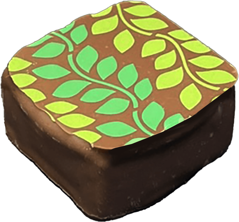 Mint & Green Tea Fresh mint steeped with green tea and blended into a milk chocolate ganache. Very fresh on the palette without the chill. Dark chocolate coverage. Dietary notes: Contains dairy, soy lecithin in chocolate.