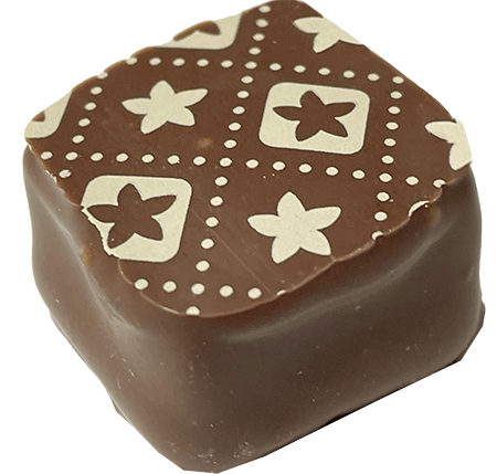 Speculaa Praline of hazelnut with cardamom, cinnamon, nutmeg, and clove with a caramel powder crunch. Milk chocolate coverage. Dietary Notes: Contains nuts (almond and hazelnut), dairy, soy lecithin in milk chocolate.