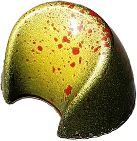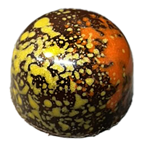 Hurricane Passion fruit chocolate ganache with grenadine, dark rum, silver rum, with orange and lemon. Dietary Notes: Milk, Alcohol, Soy Lecithin.