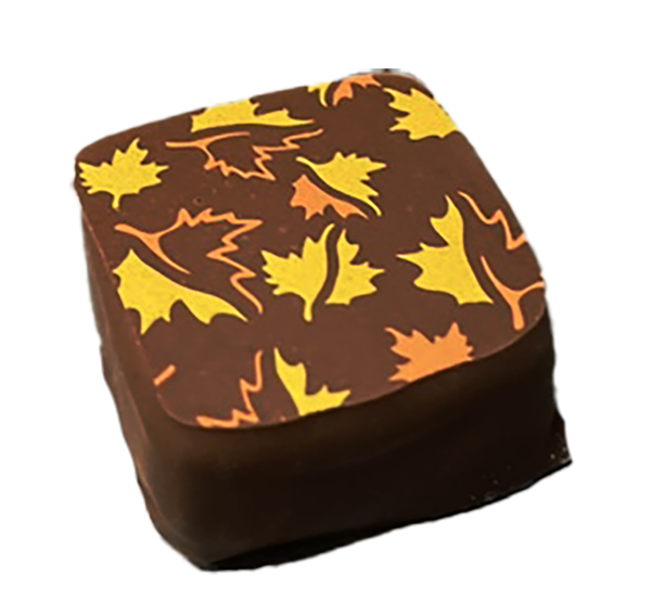 Maple Pecan Praline Toasted pecans blended into Vermont Maple Syrup and made into a ganache. Coated in 36% milk chocolate. Dietary notes: Contains dairy, tree nut (pecans), soy lecithin in chocolate.